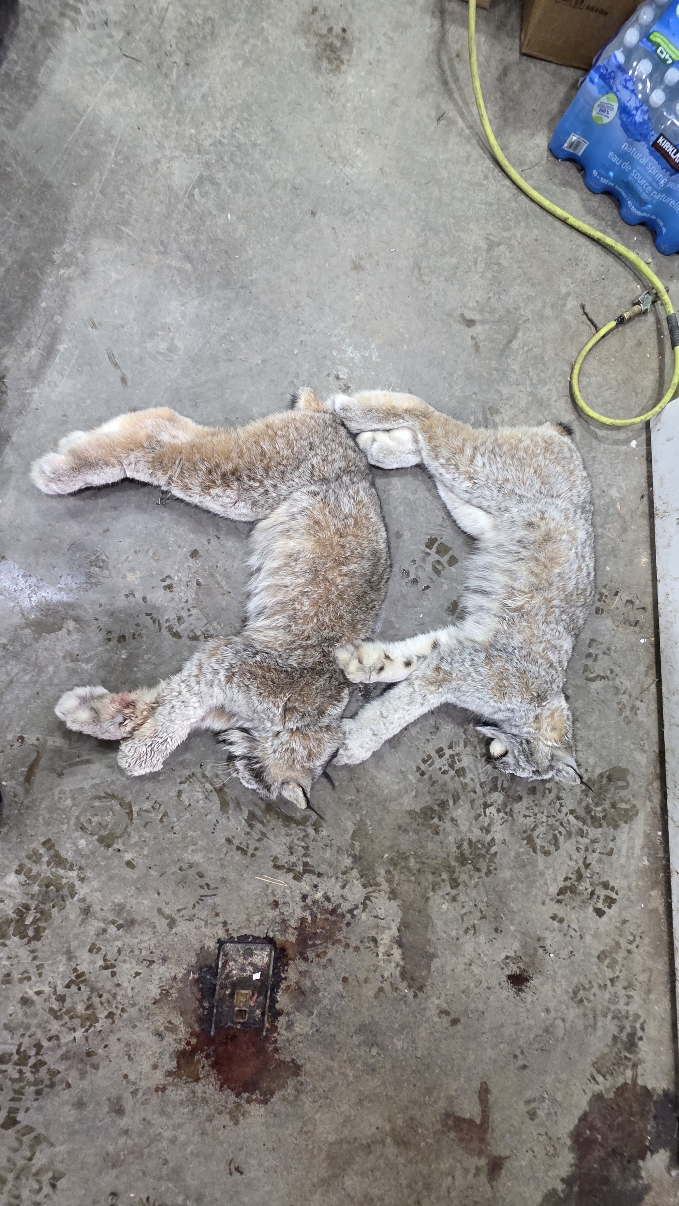 Two of the color phases of lynx on my line. These were caught about a mile apart and the light one is much more valuable than the dark one. Lynx prices have been good the last couple of years and I expect these will sell for over $200 USD at auction. For shits and giggles tell what each of these cats weigh.